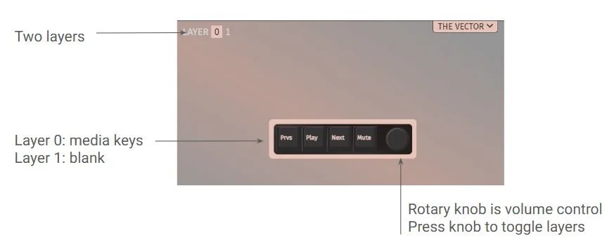 Every Vector Macropad is plug-and-play and has default assigned functions (as shown in Image 1).